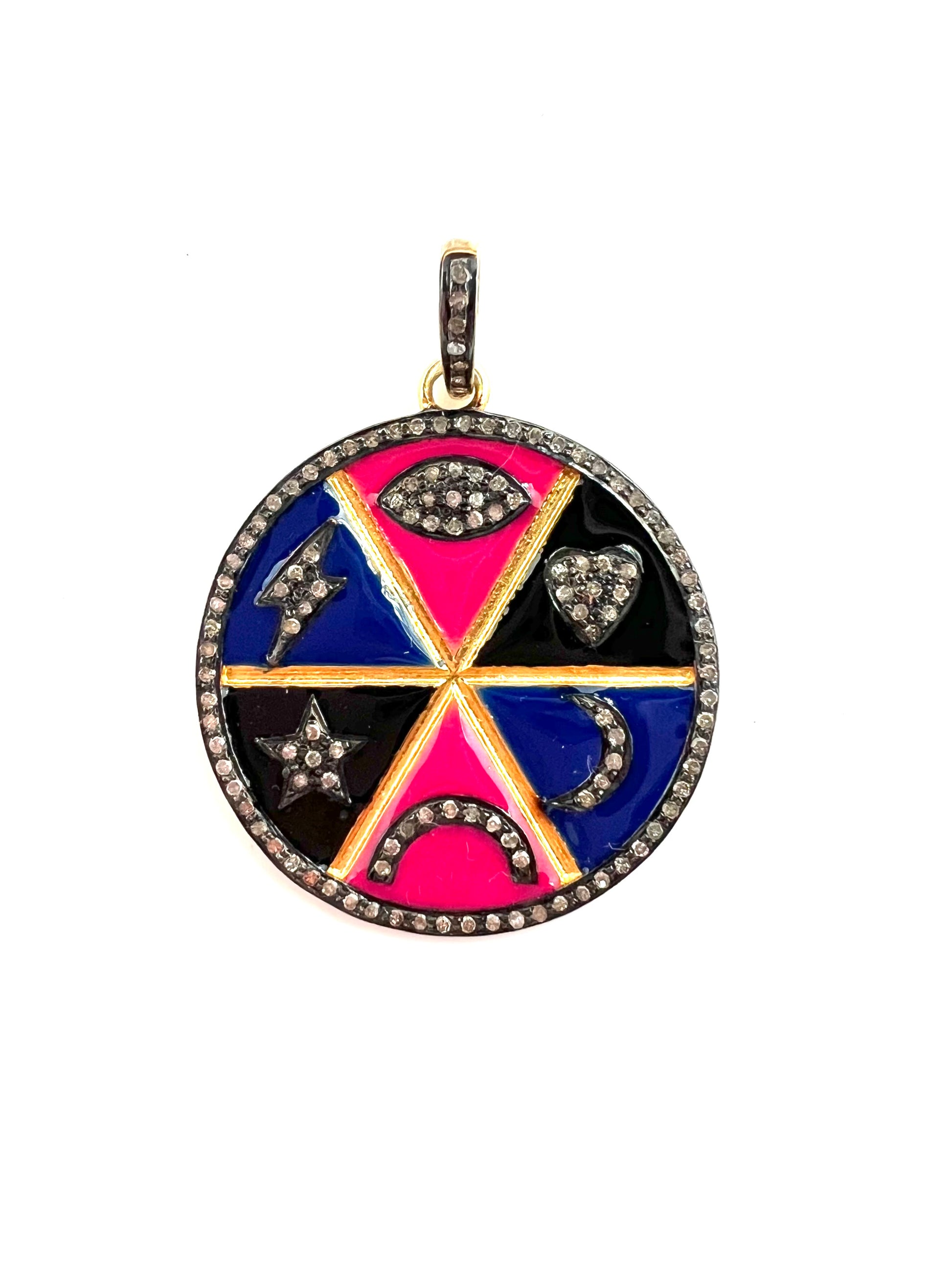 Pavé Diamonds set in Rhodium and Enamel Chip