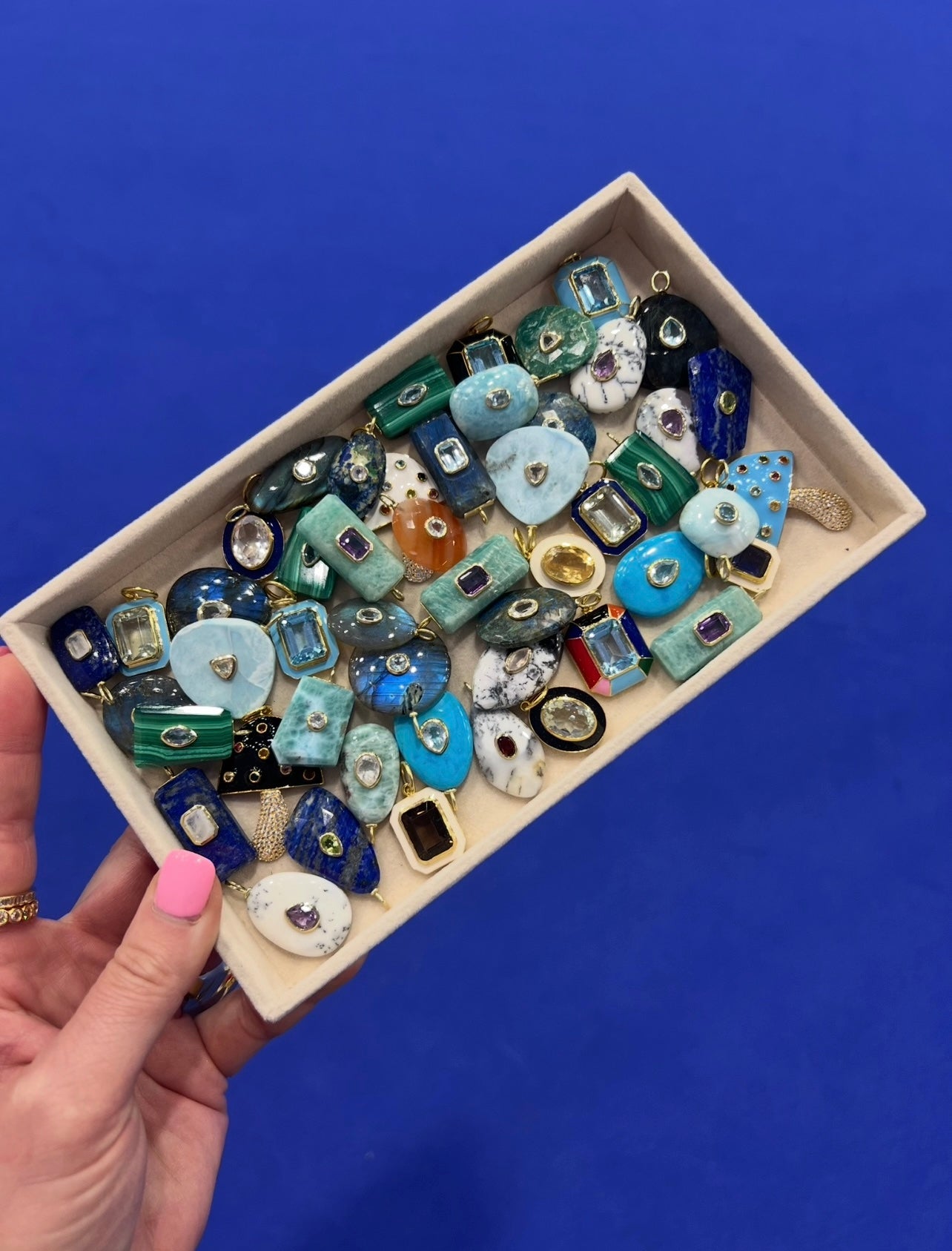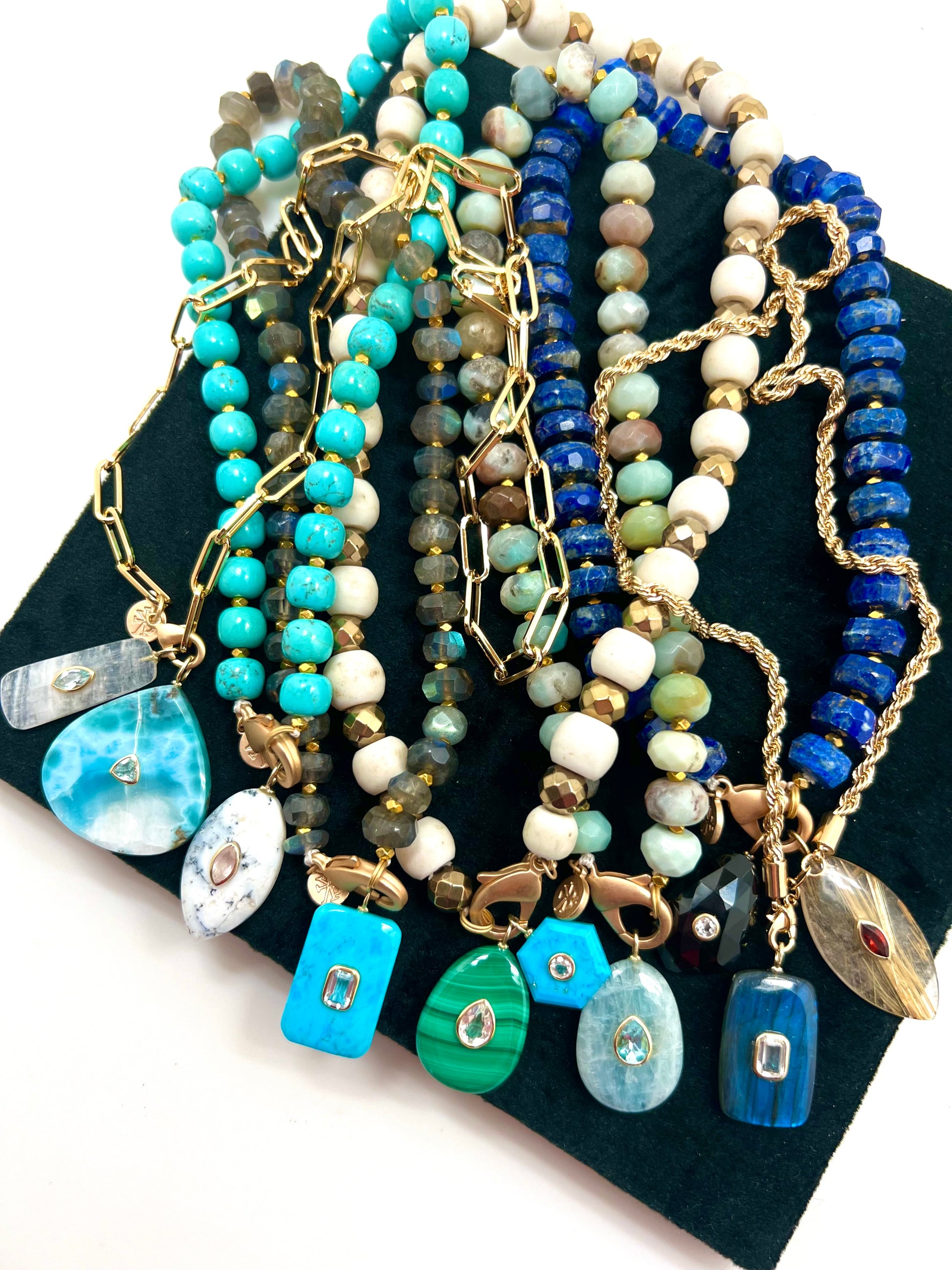 Clip to the lobster clasp of most any of our chains including paperclip, stone strands, enamel chain, etc!