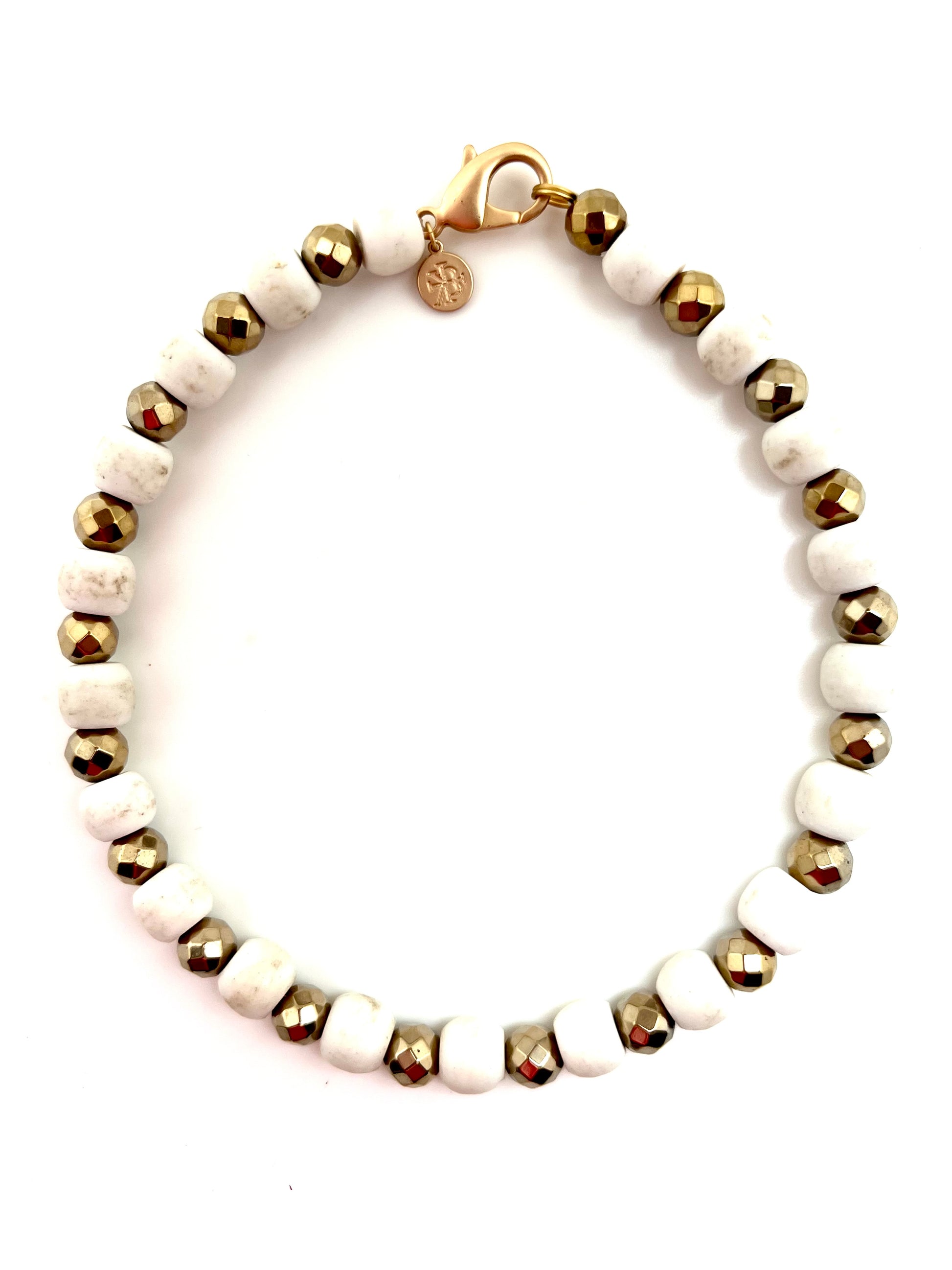 Beautiful matte White Bone with faceted round cut semi gold beading